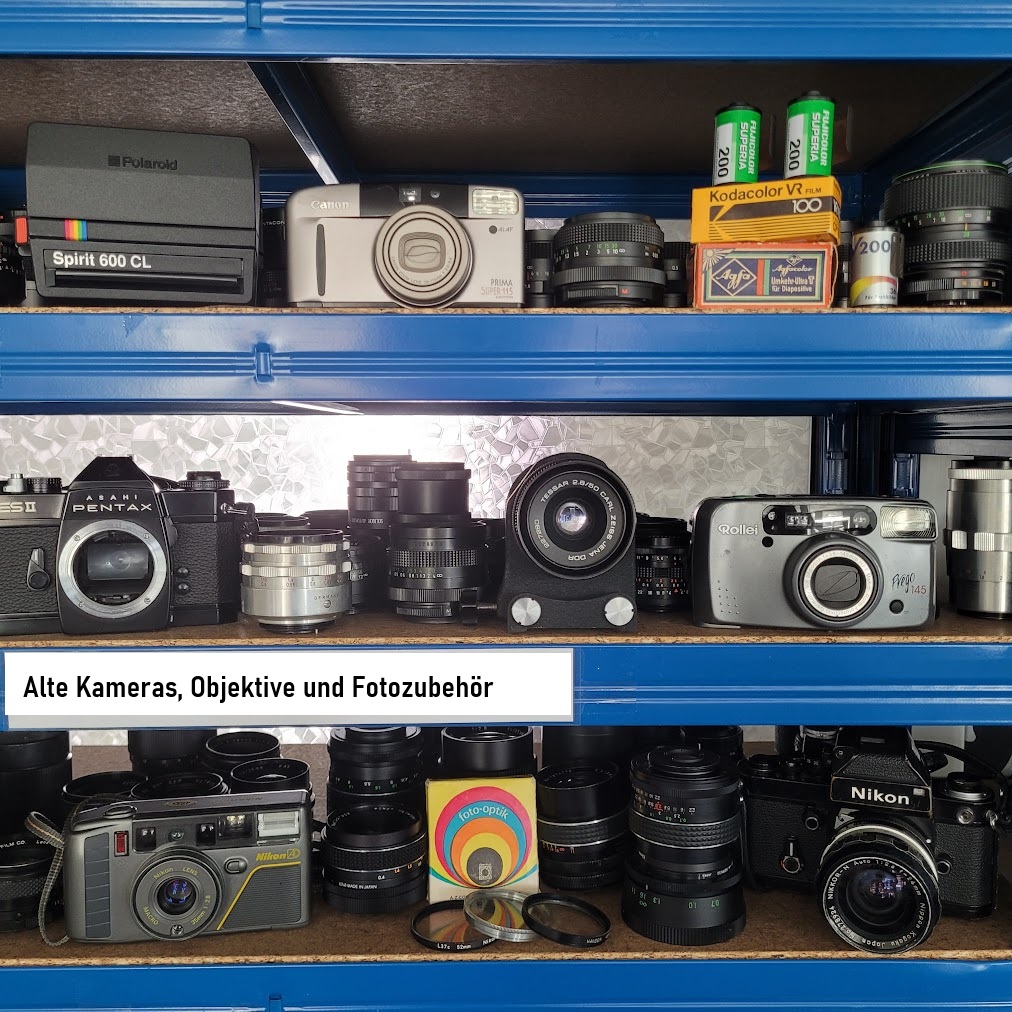 Wir kaufen alte analoge und digitale Kameras und Objektive, nicht nur Sammlerstücke oder hochpreisige Highlights, sondern auch normale Alltagsmodelle und gemischte Bestände aus Keller, Dachboden oder Nachlass. Typische Marken sind Minolta, Pentax, Canon, Nikon sowie Mamiya im Mittelformatbereich, daneben viele weitere Hersteller. Dazu gehören analoge Spiegelreflexkameras, Messsucherkameras, Mittelformatkameras, Objektive nahezu aller Systeme sowie Foto und Kamerazubehör wie Filter, Adapter, Zwischenringe, Motorantriebe, Sucher, Rückteile, Taschen, Koffer und komplette Zubehörkonvolute. Auch wenn Sie unsicher sind, ob einzelne Teile gefragt sind, senden Sie alles gesammelt mit. Wir prüfen den Bestand im Zusammenhang und erstellen ein realistisches Komplettangebot.